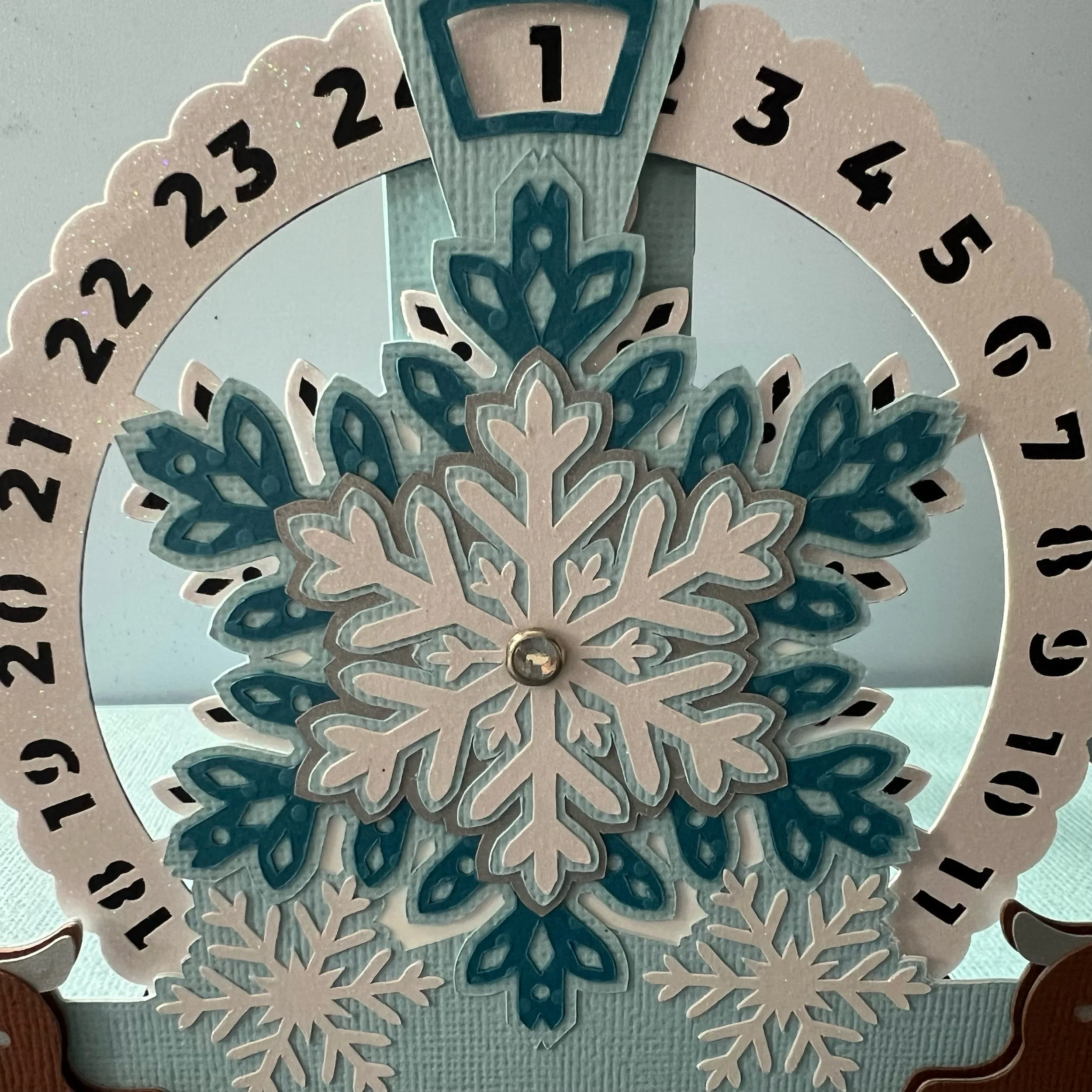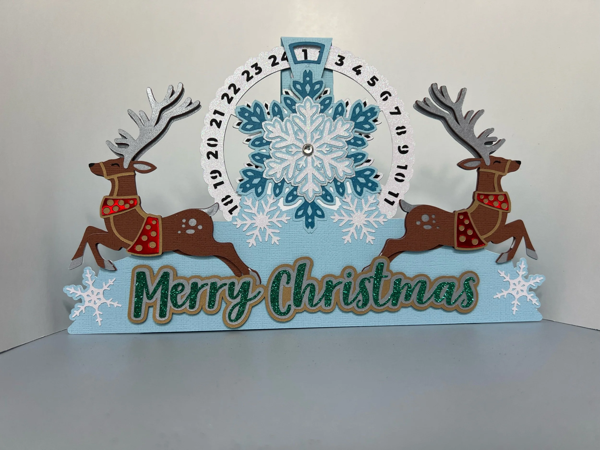 Spin the snowflake wheel to countdown the days until Christmas. It’s not a traditional Advent calendar, but it does open up to store treats inside. This piece was an absolute delight to make with is charming reindeers and it can be reused in the years to come.